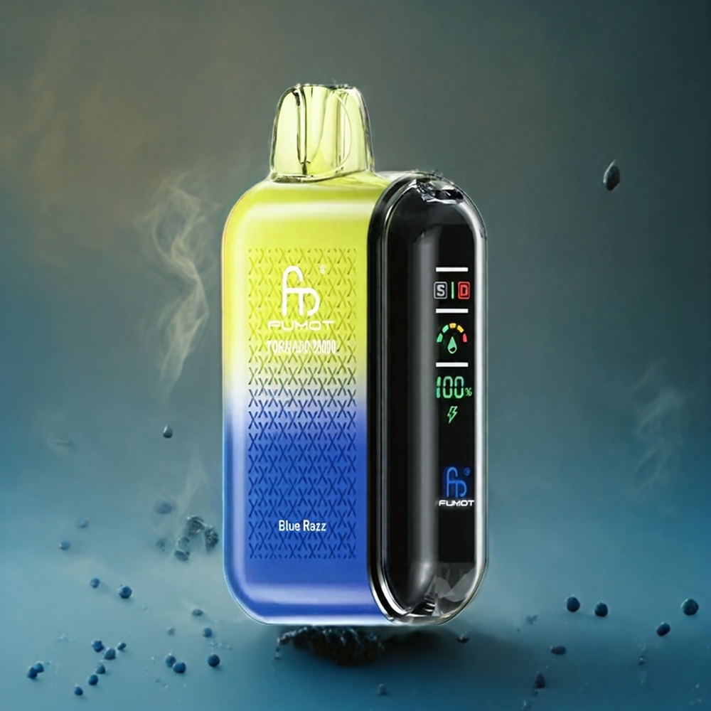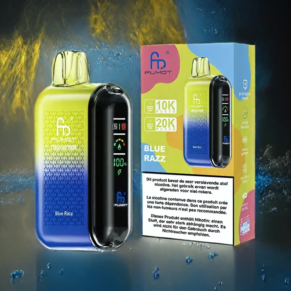 Fumot Tornado 20000 Puffs Norge Grossist Blå Bringebær Engangs Vape med Dual mesh spole, 20ml, 850mAh, Smartskjerm