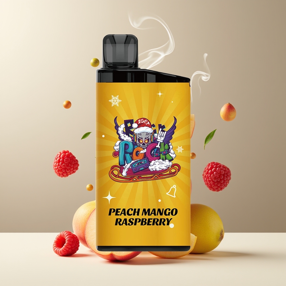 IGET Bar 3500 Puffs Engangs Vape Fersken Mango Bringebær Norge grossist – 41.3×21.3×94.5mm, 1.2 Ohm Mesh Coil, 1400 mAh, PC+ALU, 78g