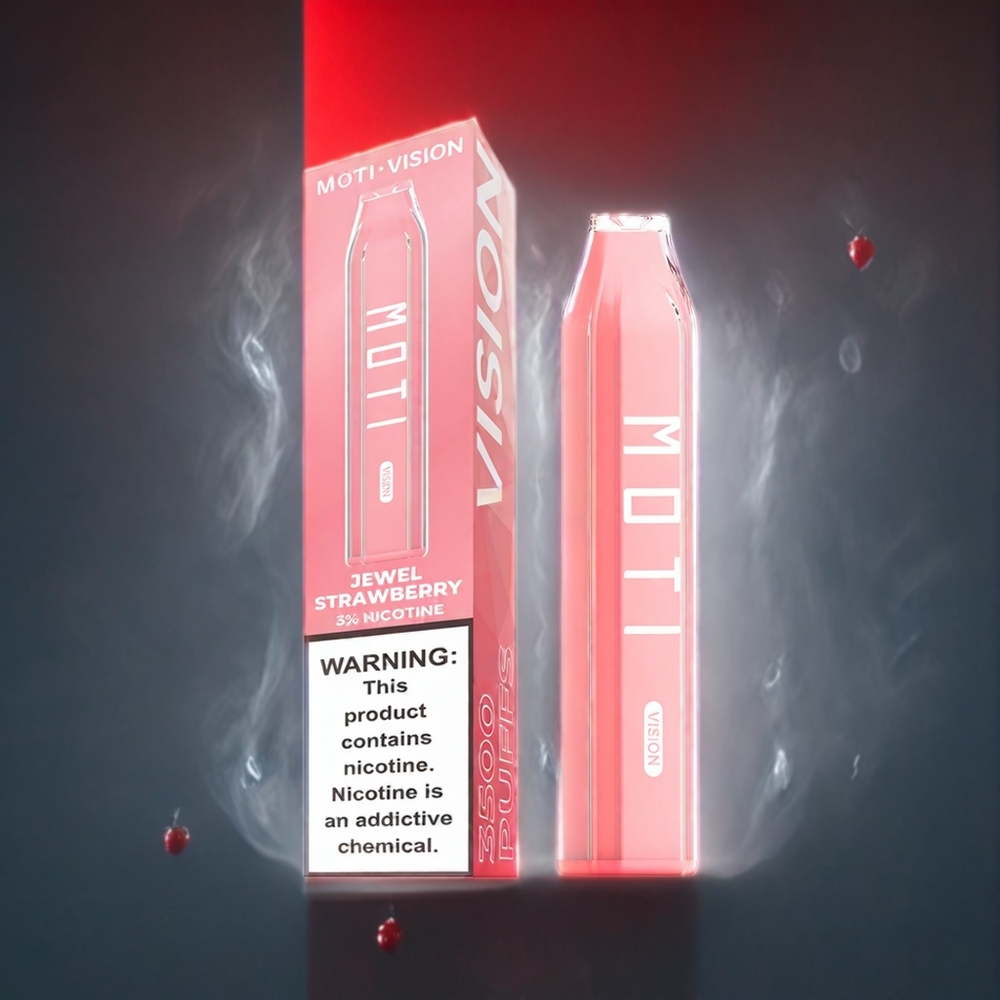 MOTI Vision 3500 Engangs Vape Norge Grossist – Jewel Jordbær (3500 puff, 10ml, 2%/5% nikotin, 650mAh, mesh spole)