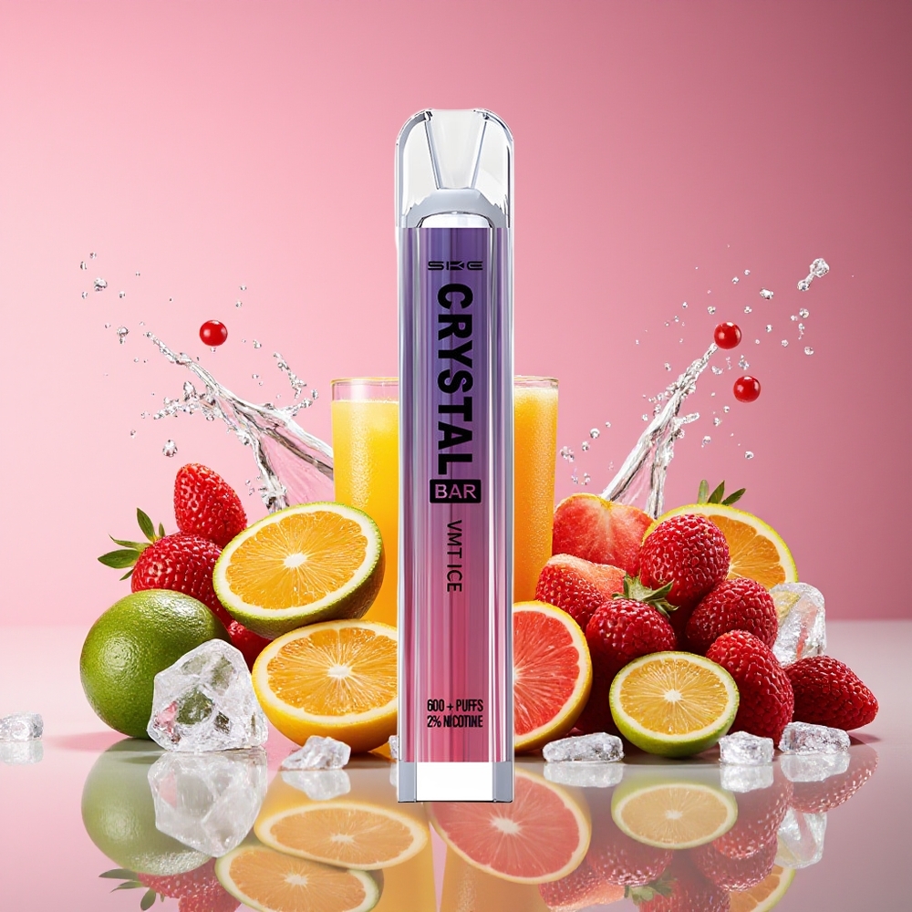 SKE Crystal BAR 600 Norge grossist Disposable Vape VMT Is (0%/2% Nikotin, 500mAh, 600 Puff, 2.0ml)